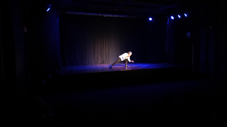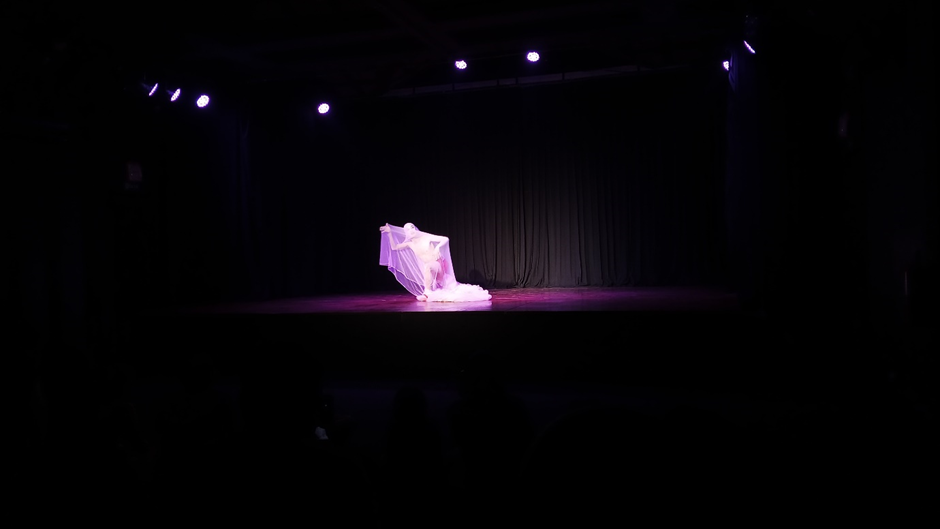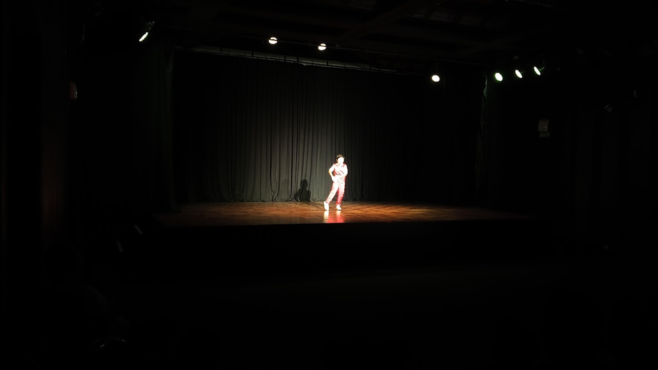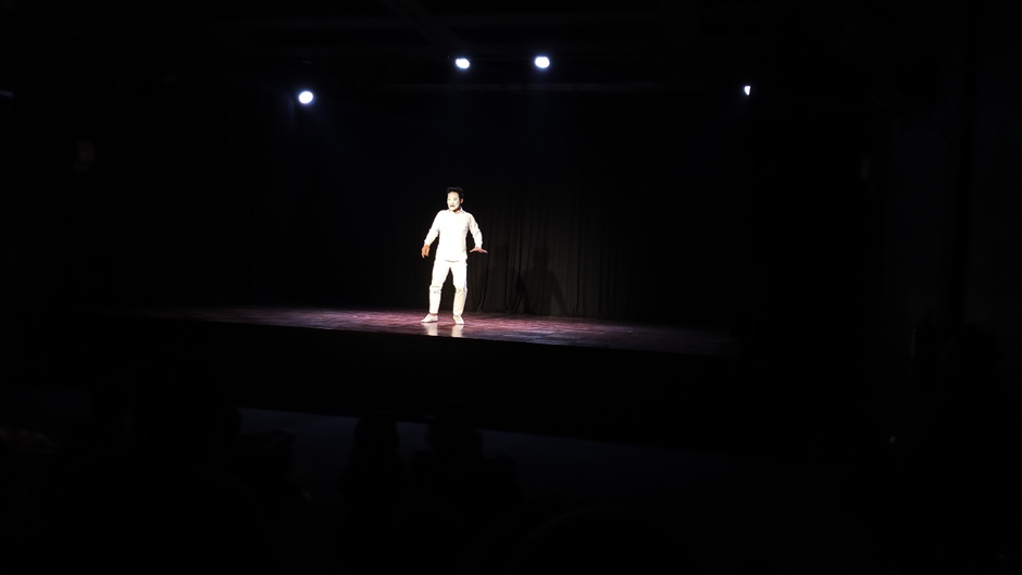 Pertunjukan kedua dibawakan oleh Yuristavia dengan judul karya “The Cook”. Lampu kembali padam setelah tadi sejenak menyala untuk membacakan judul dan penampil. Kemudian, yang tampak hanya lampu sorot yang menembak ke tengah panggung. Yuristavia pun masuk dengan kostum berwarna-warni tanpa riasan putih di wajah. Adegan dimulai dengan gerak kecil lembut tapi penuh penekanan; dan, di sepasang matamu, itu terasa berbatas tipis dengan tari. Celemek yang dipakai olehnya mempertegas judul yang dibacakan pembawa acara. Lalu, adegan bangun tidur, dan gerakan yang mencipta imaji ruang; dan dalam imaji di kepalamu, ia tengah mencipta suatu ruang, ruang dapur dengan penuh rak dan meja, juga sebuah kompor. Gerakan-gerakan yang dimunculkan, olehnya, dalam kepalamu, terbaca sebagai serangkaian gerakan memasak. Kepalamu terbawa kepada suatu imaji realis; meski ada spaktakel-spektakel berbobot komikal yang menjadikan terasa karikartural. Namun, di tengah berlangsungnya pertunjukan, kepalamu masih meraba dan betah memunculkan tanya: Apa yang ia masak sesungguhnya? Namun, imaji realis itu, yang dibawa ke arah komikal, bagimu, seketika jadi buyar saat Yuristavia memakai adonan imajiner itu menjadi pakaian, menjadikannya baju dan celana. Lalu, musik yang sejak awal tadi lembut mulai memberi penekanan lebih pada emosi tegang. Dan, titik balik bagimu yang menyaksi adalah ketika adegan membelah dada: lalu mengambil jantung, usus, dan organ dalam lain lalu memotongnya dengan pisau imajiner. Tubuhmu yang sudah agak hangat sebab jaket akhirnya merinding: realis itu menjelma jadi surealis, lalu simbolis. Tanyamu yang mula, tanya tentang apa yang ia memasak, bertambah menjadi apa ia sungguh memasak masakan, dan apa masakan itu untuk dimakan atau ada kemungkinan lain? Kata memasak pun bagimu jadi begitu lain, jadi metaforis-metonimis. Puncak yang sungguh membuatmu merinding dan terjebak pada magi adalah ketika ia melepas celemek dan menyatukannya dengan rangkaian adonan. Kain itu telah jadi adonan, jadi suatu liar dan liat imaji. Dan celemek itu… dijelmakan bayi! Lalu, ia menimang-nimang; dan perlahan lampu pun padam. Pertunjukan rampung, tetapi begitu bergema, bergema…