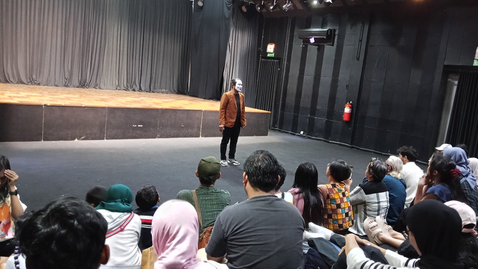 Setelah sejenak menepi, kau kembali ke IFI, untuk sesi kedua parade pantomim yang diadakan oleh Rumah Pantomim Yogyakarta dengan tajuk Sowan itu. Dan kau mendapati halaman depan dan ruang registrasi itu semakin ramai dan padat. Ah, orang-orang makin banyak hadir. Sambil menanti jam masuk, kau berbincang-bincang kecil; dan sadar, sebagai sebuah seni pertunjukan, pantomim bisa mengumpulkan sekian banyak juga ternyata. Kau, yang dibesarkan studi sastra dan bahasa, meski lahir dari keluarga penampil, terpukau tentang bagaimana pertunjukan tanpa kata bisa membuat orang berkumpul dan riuh berbincang-bincang. Ah, atau malah sebab itu…? Di sesi kedua, itu malam, kau ambil posisi duduk di sisi lain, di sisi seberang ketika sesi pertama tadi. Di situ, dingin lebih terasa; kau kancingkan jaket jin hitammu, jaket pemberian itu—